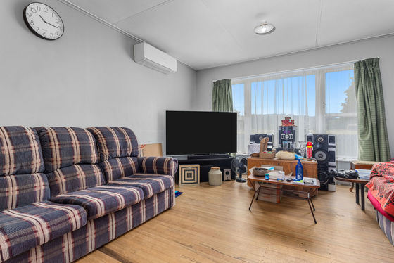 This solid 1960s weatherboard home sits proudly on an impressive 809sqm (approx.) flat, fully fenced section - offering space, privacy, and plenty of potential. Inside, the open-plan living room is light and welcoming, complemented by an upgraded, highly functional kitchen. The living area flows seamlessly to a north-facing, covered rear patio - perfect for year-round entertaining or relaxed afternoons in the sun. All three bedrooms are well-proportioned, each with built-in wardrobes, and feature beautiful native timber flooring that adds warmth and character throughout the home. The bathroom includes a corner shower, toilet, and vanity, while the separate laundry is conveniently located off the front porch. Comfort is assured with a heat pump, plus an additional space-saving heater in the hallway. To the rear of the section, you'll find a single garage and ample off-street parking for extra vehicles. An ideal first home or a smart investment opportunity - especially with a settled tenant already in place and happy to stay. This one is well worth your consideration, contact Pat Jarvey for viewing times as there are no upcoming open homes.