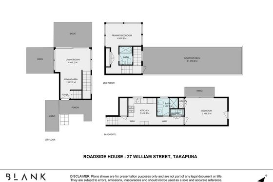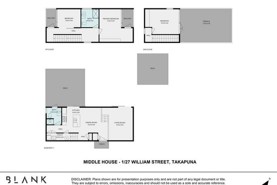 The middle residence sits beautifully between the primary and roadside homes. This three-bedroom, two-bathroom home offers an open-plan kitchen and dining area, a sunken lounge flowing to superb outdoor decking ideal for entertaining, as well as an expansive lawn area. The master suite enjoys access to a large roof deck with sea views, making this home ideal for extended family or guests.