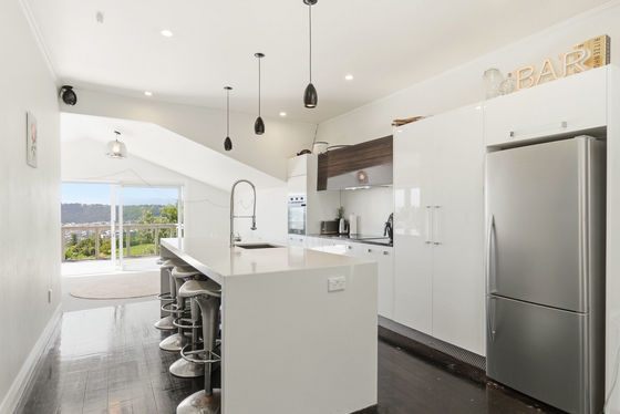 - Four bedrooms and two bathrooms, including an ensuite for the master suite, which occupies the top level, boasting a large walk-in wardrobe and sweeping views over the city and harbour on one side and tranquil bush-clad hills on the other