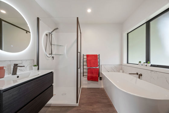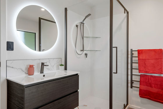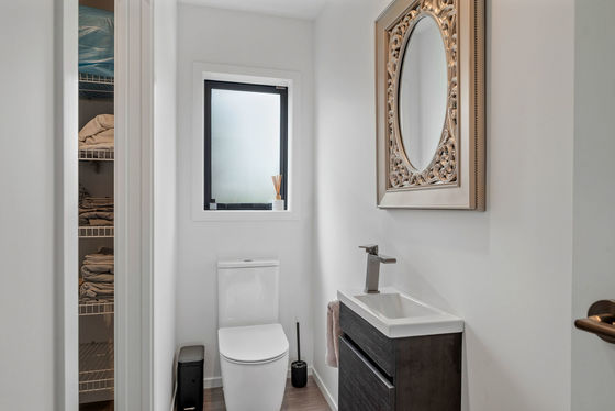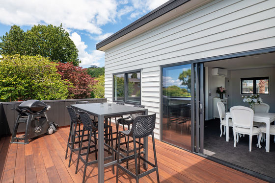 Downstairs is designed for modern living, with three bedrooms offering generous wardrobe space, plus the main bathroom. The main bedroom opens to the deck via a ranch slider, the perfect spot for a quiet morning coffee or a peaceful evening outdoors.