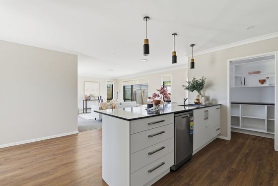 From the moment you step inside, the sense of space and flow is clear. The heart of the home is the contemporary kitchen, anchored by a generous breakfast bar that naturally draws people together. With a walk-in pantry keeping everything neatly tucked away, the space feels calm, functional, and ready for everyday life. Open-plan living connects seamlessly to the outdoor patio, creating an effortless indoor-outdoor flow that's ideal for entertaining or simply enjoying time at home.
