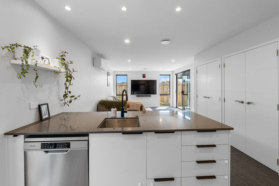 Open-Plan Living - The combined lounge and kitchen area promotes a social, functional layout with effortless flow to the outdoor courtyard.