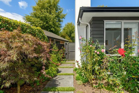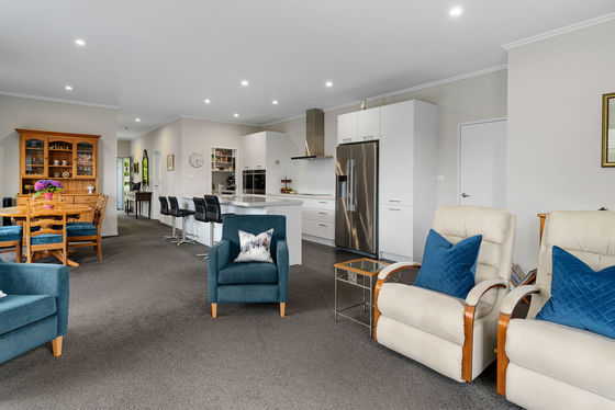 At the heart of the home is a light-filled, sunny open-plan living and dining space, anchored by a generous modern kitchen featuring a large benchtop, double wall oven, fitted microwave, and a spacious scullery, perfect for hosting and everyday ease. Sliding doors open seamlessly to a covered patio, creating a fantastic indoor-outdoor flow for entertaining or relaxing year-round. The surrounding rose gardens are picturesque and private, ideal for those with a green thumb, and the property is not overlooked, enhancing the sense of seclusion.