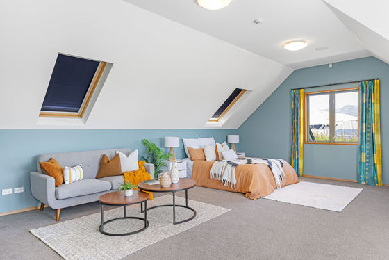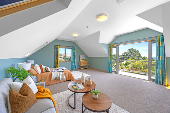 Upstairs, a superb guest retreat or potential Airbnb suite offers a sense of independence, complete with kitchenette, ensuite, lounge, and a spacious balcony capturing uninterrupted views across the Port Hills and Southern Alps.
