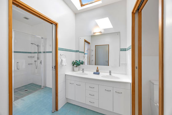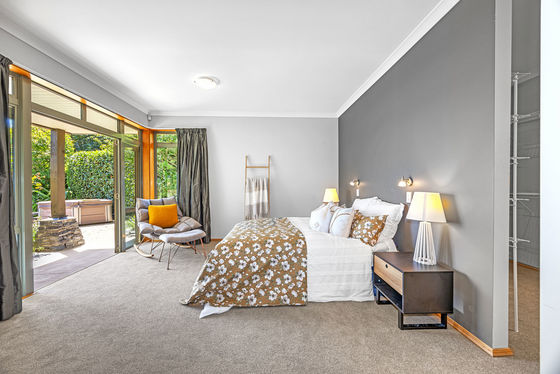 Offering five bedrooms and three bathrooms, the layout is generous and thoughtfully configured - ideal for growing families, multigenerational living, or simply enjoying space without compromise. The master suite, with walk-in wardrobe and full bathroom, is separated from the west wing of remaining bedrooms and main bathroom. Each bedroom enjoys direct outdoor access via French doors, enhancing the home's connection to its surroundings.