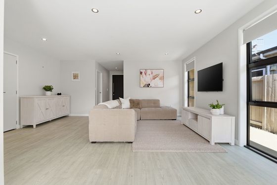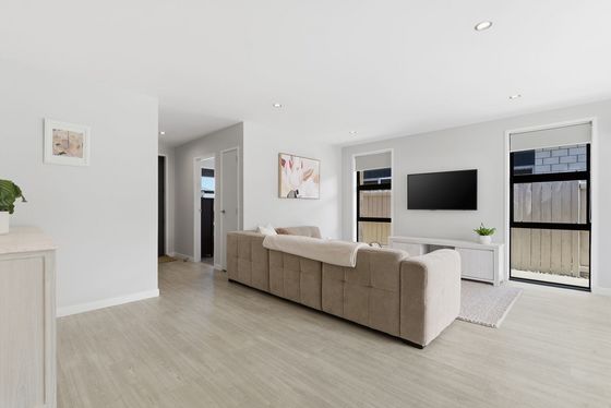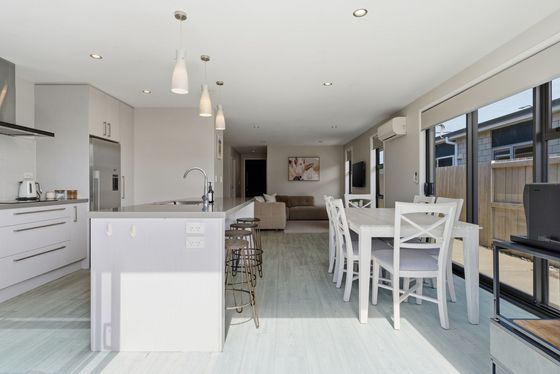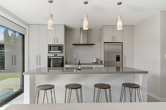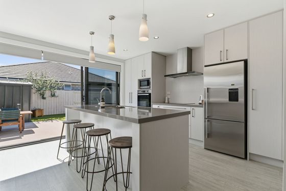 The heart of the home is the open-plan kitchen, dining, and living area " a space made for connection. The kitchen sits at the centre, with a generous island bench that naturally draws people together, whether it's busy weekday mornings or relaxed evenings with friends. Large sliding doors extend the living area outdoors, creating a seamless connection to the sunny patio and outdoor setting, perfect for entertaining or unwinding at the end of the day.