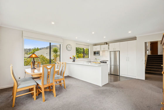 At the heart of the home, the open-plan kitchen and dining area connects seamlessly to the lounge through French doors, creating a flexible space that works just as well for relaxed family time as it does for entertaining. From here, sliding doors open to a sunny north-facing deck " a perfect spot for morning coffee, long lunches or summer evenings with friends. Outside, established plantings and lawn offer space for children or pets to play while still being easy to maintain.