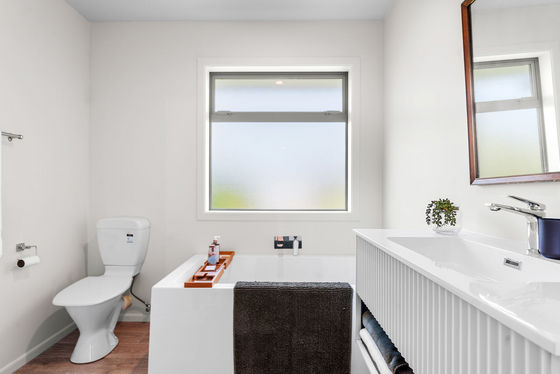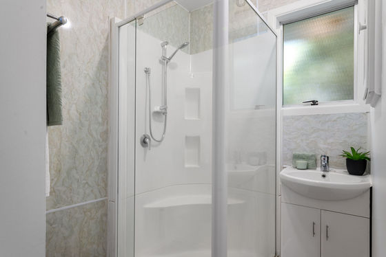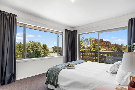 The bedrooms and bathrooms are well spread across two levels, offering flexibility for families. Downstairs features two good-sized bedrooms with double glazing, serviced by a bathroom and a separate toilet. Upstairs, two further sunny bedrooms enjoy elevated outlooks and are complemented by a newly renovated family bathroom, adding a modern touch and extra convenience.