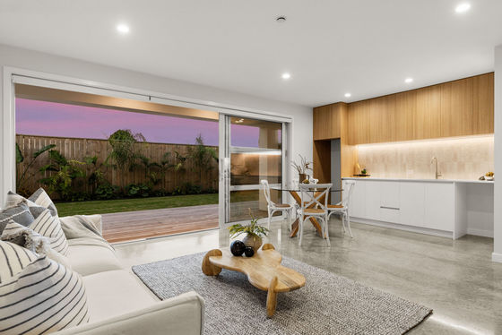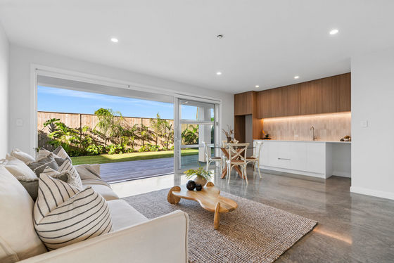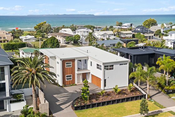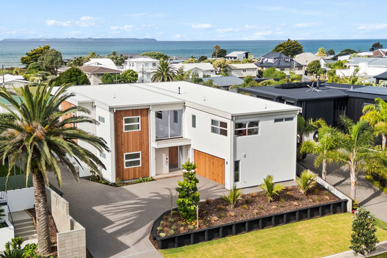 Set against a dazzling coastal backdrop, this luxurious new home situated on a highly desirable, well-established cul de sac sits close to shoreline and surf. Capturing wide panoramas of the Pacific Ocean and Papamoa Hills, a simple linear aesthetic influences the architecturally designed 347 sqm (approx.) residence complete with layout suited to multigenerational families or guests.