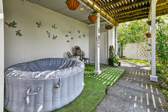 The villa has beautiful water views, only a minute walk from Weiti River Marina or a few minutes from Arkles Bay Beach. The villa being sited on a spacious 890m2 section with a variety of trees and ferns which adds character whilst it also invites over a few of our tropical birds.