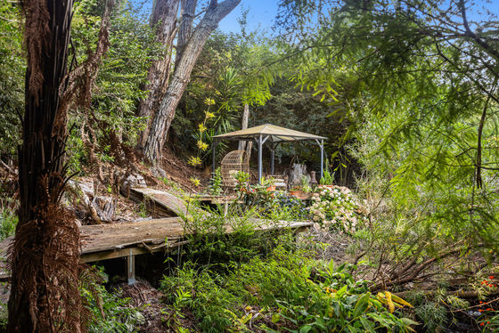 Step outside and the lifestyle really shines. Over 100sqm of open decking and patio wraps around a stream-fed pond, complete with boardwalk and a wood-fired bath - all set within 4,227sqm of naturally landscaped, easy-care grounds. Add town water plus a 15,000-litre rainwater tank, raised veggie gardens, multiple sunny relaxation spots, meandering paths, and ample parking alongside the double garage.