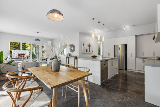 At the heart of the home is a sun-drenched living space and expansive open-plan kitchen and dining - perfect for entertaining and everyday living. This flows seamlessly out to around 80sqm of covered outdoor living, complete with heating and an outdoor fire. Bi-folds and screens create effortless indoor-outdoor flow and flexible ventilation for every season.