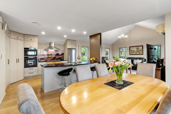 Designed for modern family life, the home offers four double bedrooms, including a private upstairs master suite with ensuite and walk-in wardrobe. Two generous living areas provide flexibility, with a downstairs retreat ideal for teenagers, extended family or working from home. Landscaped, easy-care grounds frame the home, enhancing privacy, while keeping outside living effortless.