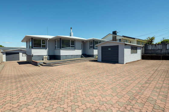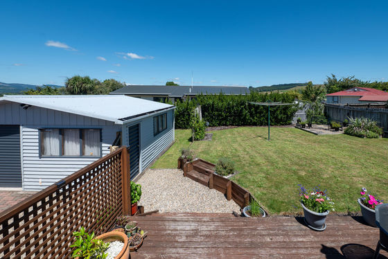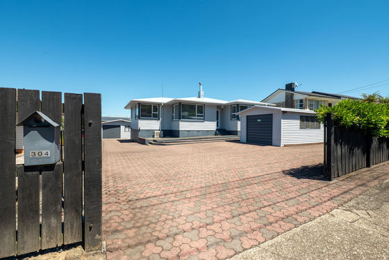 The home is positioned to face the sun on a good-sized section with some feature landscaping, a deck for relaxing or outdoor dining and a back lawn where children can run around to let off steam. The section is fully fenced at the rear and there is generous parking with two separate garages and off-street parking space.
