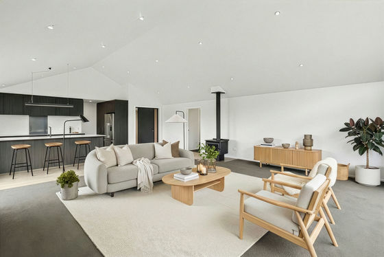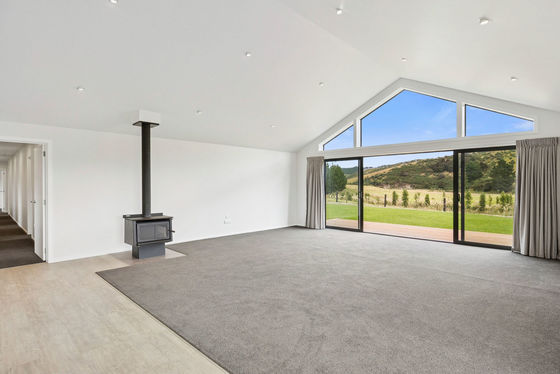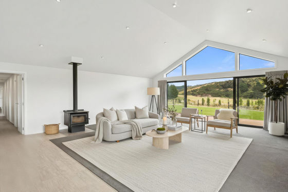 Additional features include a dedicated office, laundry, separate toilet and walk-in linen cupboard, along with an internal access double garage, and a log burner for year-round comfort.