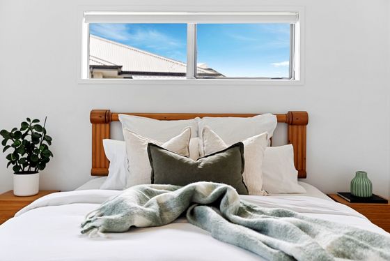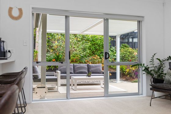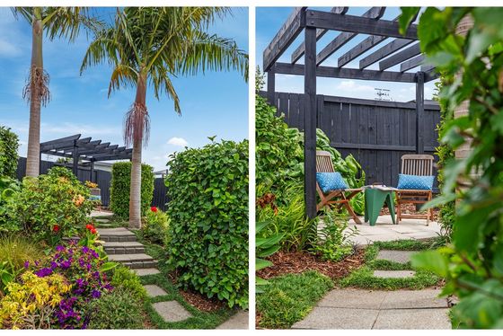 Designed for easy enjoyment, the covered outdoor entertaining area with louvred pergola creates a sheltered space for year-round use. The lawn offers plenty of room for kids and pets to play, complemented by fruit trees and privacy.