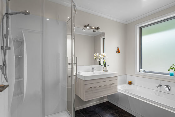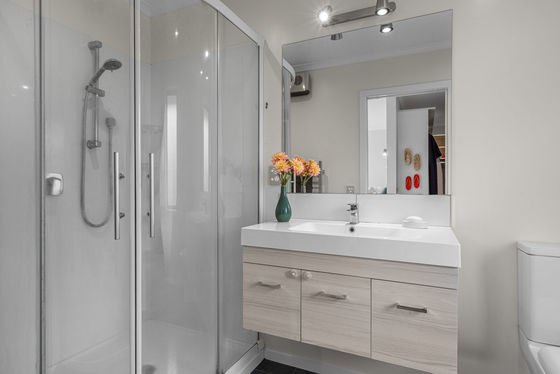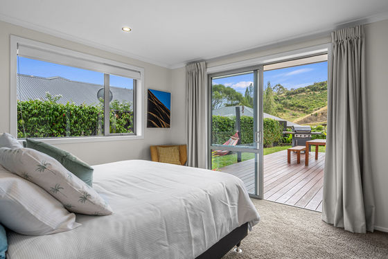 The master bedroom provides a private retreat with views to the surrounding hills and native trees. It features a generous walk-in wardrobe, a spacious ensuite, and direct access to the deck and garden - an ideal spot for a morning coffee or some quiet time at the end of the day.