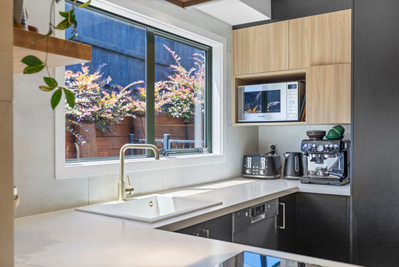 Tucked away up a private right of way, this modern single-level home has been thoughtfully designed and beautifully maintained. It features four bedrooms, offering flexibility for families, professionals, or those embracing a work-from-home lifestyle. The light filled open plan kitchen and dining area is welcoming and functional, while the lounge opens to a sunny patio - an ideal spot for alfresco dining, entertaining friends, or simply relaxing outdoors. The well-appointed kitchen includes induction cooking, ample bench space, and excellent storage, perfectly suited to both busy family life and weekend hosting.
