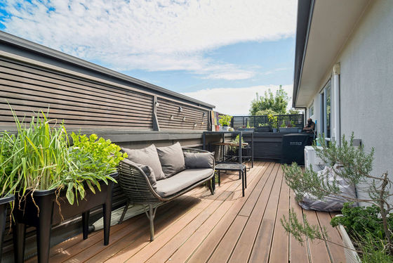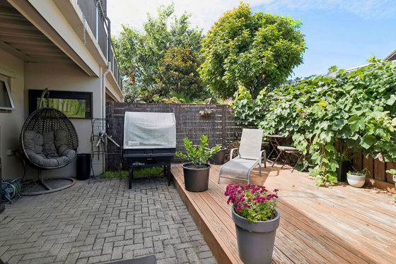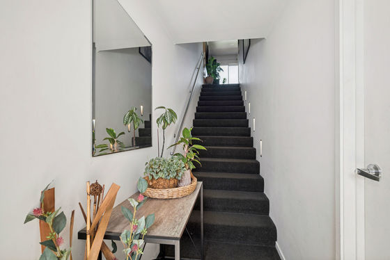 Stairs lead up to the main living level, where a light-filled open-plan kitchen and living area create a relaxed, easy space to come home to. The layout suits both everyday living and casual entertaining, with the living area flowing out to a deck, offering a great spot to enjoy fresh air, relax after work, or spend time outdoors.