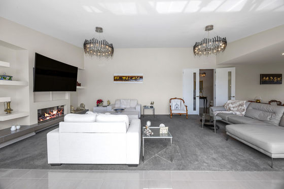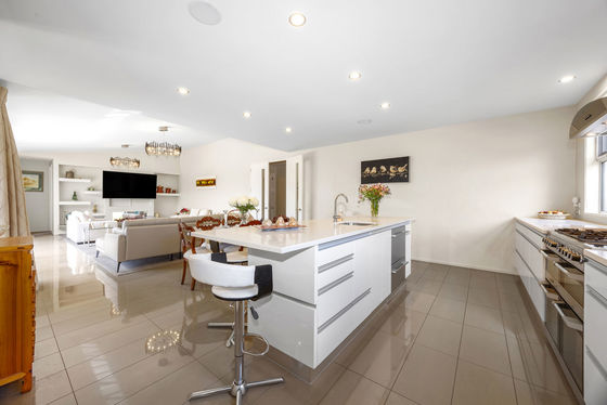 The stunning entranceway welcomes you through double doors as you enter this immaculate home. At the heart of it all is a superb, modern kitchen, complete with a generous butler's pantry, quality fixtures and fittings and designed for effortless entertaining and family life. A culinary setting equally suited to intimate family moments or grand scale entertaining. The spacious open plan living is complemented by a separate lounge, connected by a striking double sided fireplace creating both warmth and ambience.