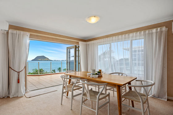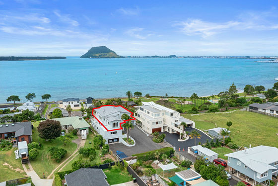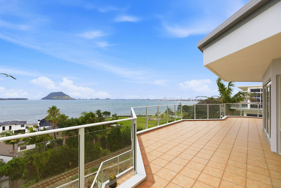 Magnificent panoramic views of Mt Maunganui, Matakana Island and Tauranga Port will enchant and impress every day when living in this sprawling penthouse apartment sited in a boutique three dwelling property overlooking Kulim Park. From the huge wrap around deck spend days watching the harbour entrance with leisure boats and cruise ships, and enjoy starry nights twinkling with the lights and commerce of the Port.
