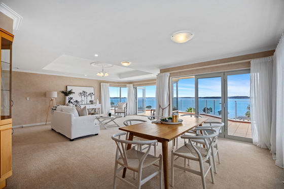 Enter your own atrium foyer and take the stairs or lift to grand, spacious open plan living, light and bright with all day sun streaming in through expansive floor to ceiling glazing. Entertaining is effortless with a granite toped kitchen, casual and formal dining and seamless indoor/outdoor flow to the wide tiled deck and those priceless views. Two large bedrooms and third bedroom/office share the primary bathroom and separate toilet, while the sizable master bedroom enjoys a walk in robe, elegant ensuite, deck access and shares those unobstructed views, sure to be a constant distraction. Built in the early 2000s, the building has benefited from significant recent upgrades including a new roof and full exterior repaint. Inside, the original décor provides the perfect blank canvas, while the generous, well-designed layout offers outstanding scope to renovate, refresh and unlock this apartment's full potential.