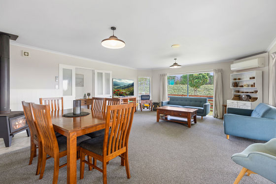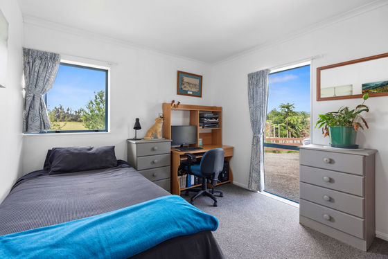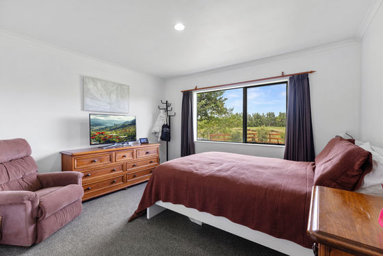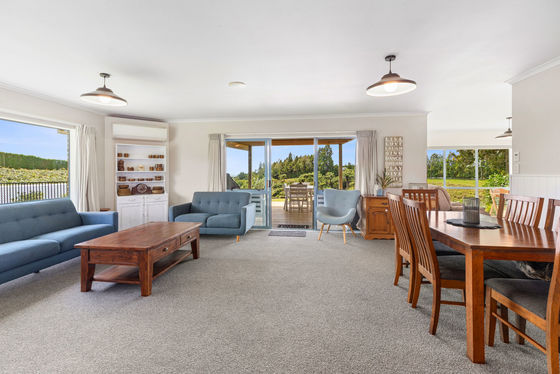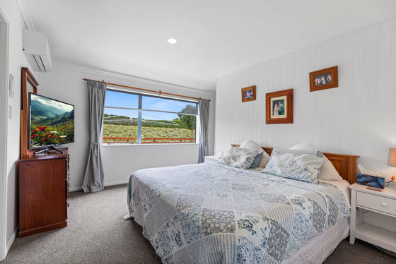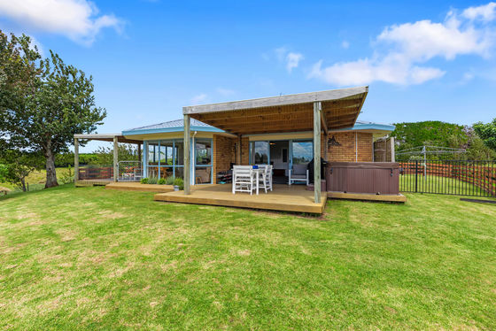 A large modern well appointed four bedroom home plus office enjoys a sunny north facing aspect with sea views, open plan living, solar power and a double carport, ideal for comfortable family living. Two sheds and machinery complete this desirable package making this a turn key orchard setup.