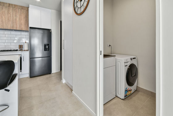 Practical features have been thoughtfully considered, including a neatly tucked away guest toilet with hand basin and a concealed laundry cupboard to keep everything tidy and streamlined.