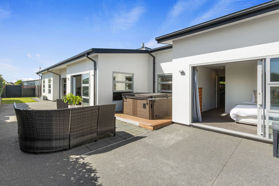 Positioned in the sought-after Sovereign Palms pocket of Kaiapoi, this contemporary 243m² mono-pitch home was thoughtfully designed for spacious family living and a lifestyle of modern comfort, practicality, and private outdoor space - which is set on a generous 656m² section with privacy, sun, and established landscaping.