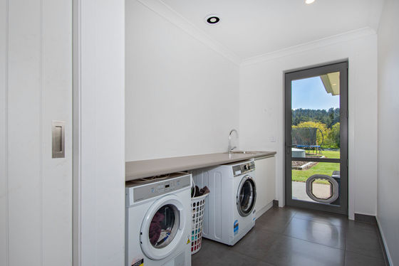 This nearly new home features five large bedrooms, an office, three bathrooms (including two ensuites), and a separate powder room. All bedrooms feature large wardrobes, including two walk-in wardrobes.