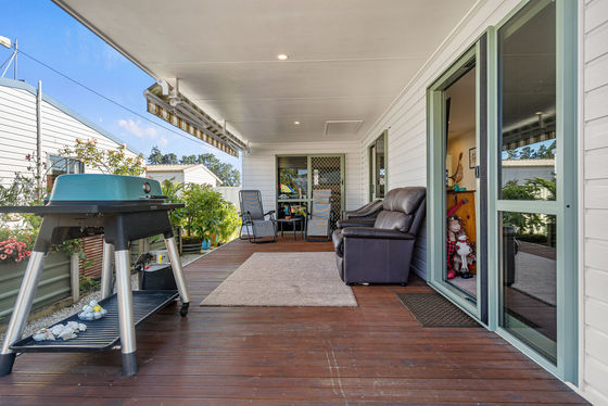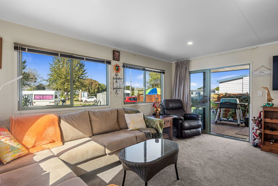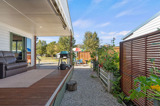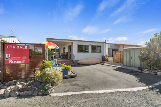 The relocatable home is offered for sale, with the site leased from Tahuna Beach Camp - contact Andrew Follows for more information.
