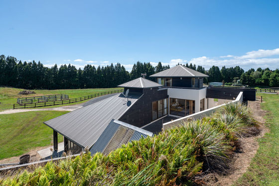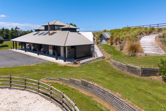 From the gated entry, the koru design driveway winds to the dwelling, a real standout with its unique, architectural design that combines the rustic charm of stables-style features with the comforts for modern living.