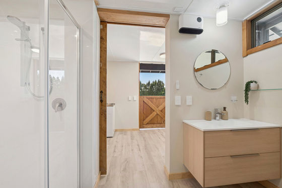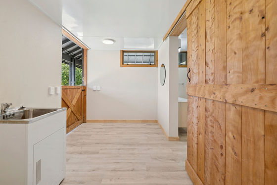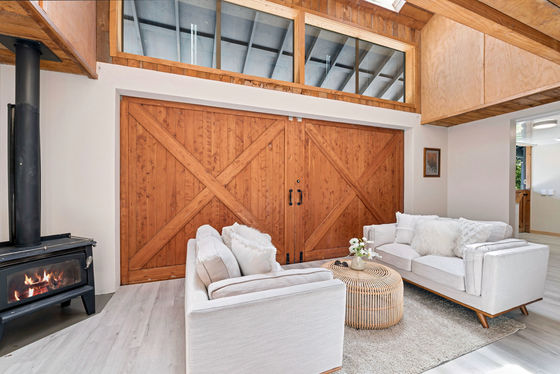 Stable doors, sliding barn doors, a log fire and the generous use of natural timber sets the scene, with open plan living, dining and kitchen space that can open up to the outdoors and overlook the paddocks - the ideal space for Sunday brunch or sunset dining. The bathroom also has access inside and out affording the ultimate practicality for a lifestyle property.