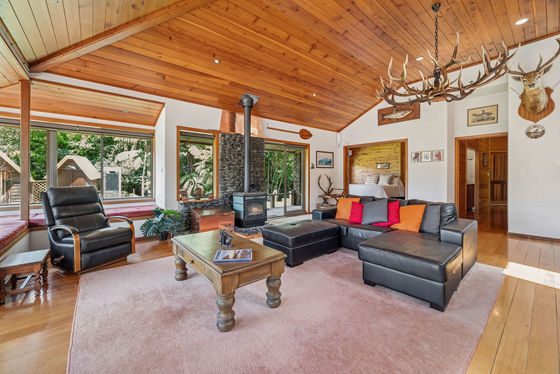 The home itself embraces a rustic fishing lodge charm - warm, welcoming, and designed for gathering. Open plan living, dining and kitchen areas are anchored by breathtaking lake views, with the water always front and centre. Large windows frame the ever-changing blues of the lake and sky, ensuring the outlook is never far from sight.