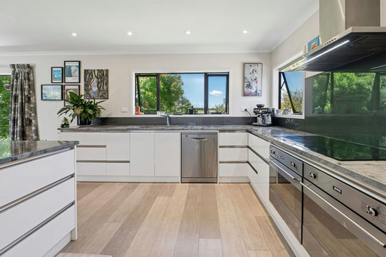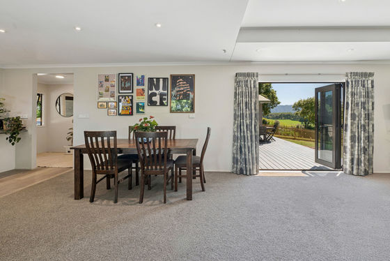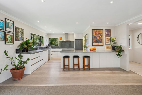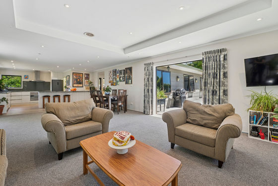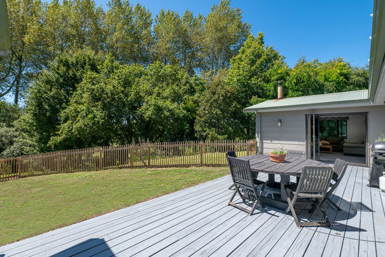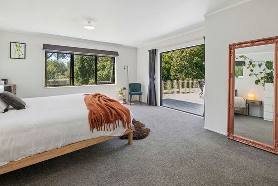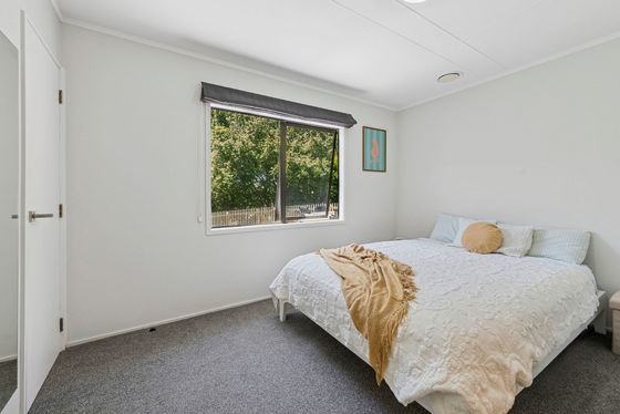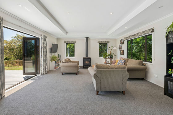 The home is designed to embrace its surroundings. With five bedrooms, two modern bathrooms, and generous open-plan living, it's a home that works for families of all stages. The modern large kitchen with polished stone benchtops, a breakfast bar and a large walk-in pantry form the heart of the home, while large windows flood the living spaces with natural light and stunning views toward Mount Tarawera. The living area flows onto the two large decks, creating an ideal space for entertaining, or relaxing on the long summer evenings.