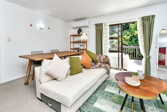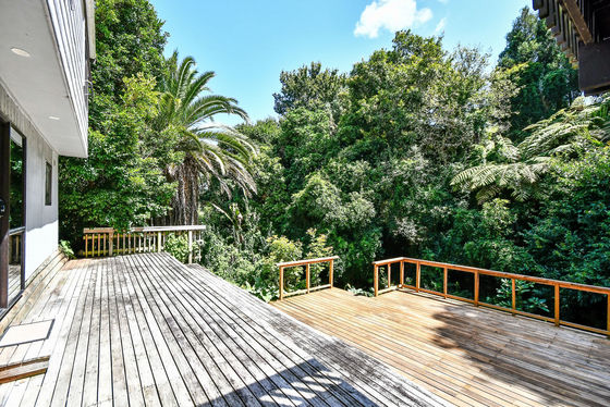Inside, you'll find three generous bedrooms and a family bathroom with a separate toilet. The kitchen flows into the spacious open-plan living and dining area. From the open plan living, step out to a large elevated deck that extends the living space outdoors and overlooks peaceful greenery.
