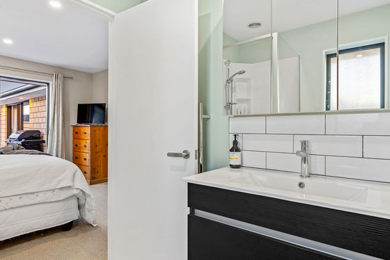 The thoughtfully designed layout features four bedrooms, including a master with ensuite, plus a family bathroom and separate toilet. The kitchen is modern and functional, complete with a walk-in pantry for easy meal prep and storage. Contemporary décor adds style, while a log burner ensures cosy winter evenings and a heat pump provides year-round comfort.