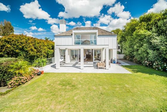 Designed by acclaimed architects Sumich Chaplin and constructed in 2007, the home showcases a timeless white board-and-batten exterior, shingle roof and cedar joinery, a refined coastal aesthetic that sits beautifully within its landscape.