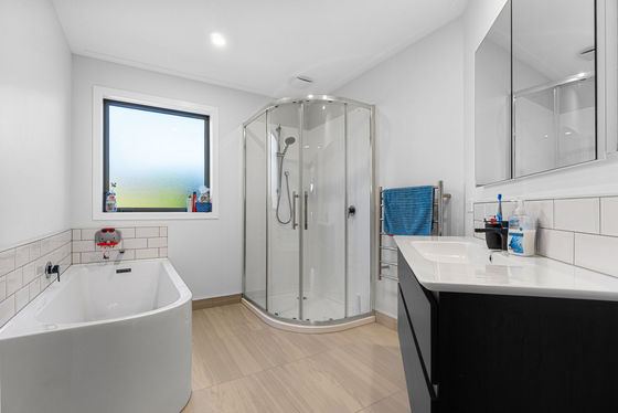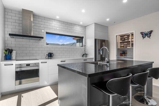 At the heart of the home is a kitchen that's absolutely on spec. Complete with a generous island bench, breakfast bar, and a well-appointed butler's pantry, it's designed for both effortless entertaining and everyday living. Set against a sea of on-trend subway tiles, this space is as functional as it is beautiful.