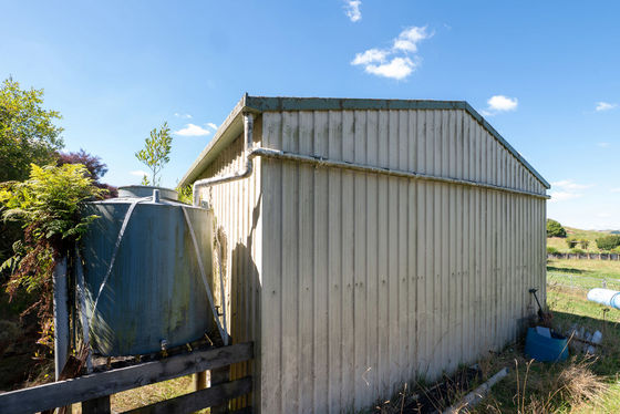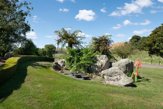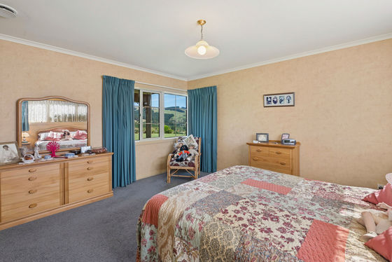 The land is thoughtfully divided into 11 well-fenced paddocks, complete with water troughs, making it ideal for grazing stock or hobby farming. A handy five-bay implement shed, with two bays open and three closed in with concrete floor and toilet, and calf-rearing facilities provide flexibility for farming pursuits, storage, or business ventures.