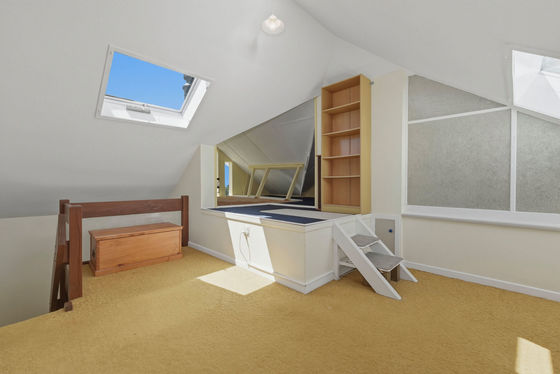 Upstairs, skylights bring natural light to a large room which offers flexibility as a future office or additional accommodation, leading in turn to substantial attic storage space and under-eaves cupboards.