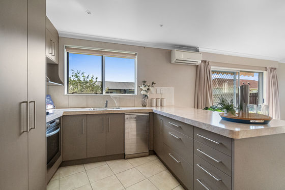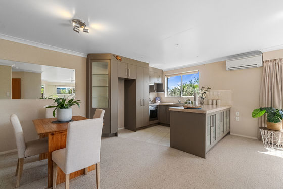 Step inside and you're welcomed by a light filled open plan kitchen and living space that feels instantly homely. Neutral tones create a calm and timeless backdrop, ready to complement your own furnishings and style. Two double bedrooms with built in wardrobes provide comfortable accommodation, serviced by a bathroom featuring a practical wet floor shower. A separate laundry adds everyday functionality, while the heat pump keeps the home cosy in winter and cool through the warmer months.