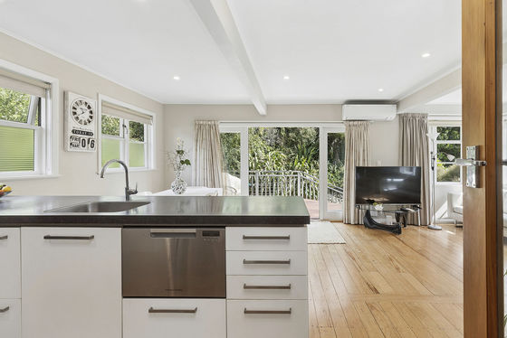 Flowing from the living room through French doors is a large deck and BBQ area, surrounded by a beautifully landscaped garden on a secluded, generous section - a peaceful and sheltered outdoor haven ideal for entertaining or relaxing with family.