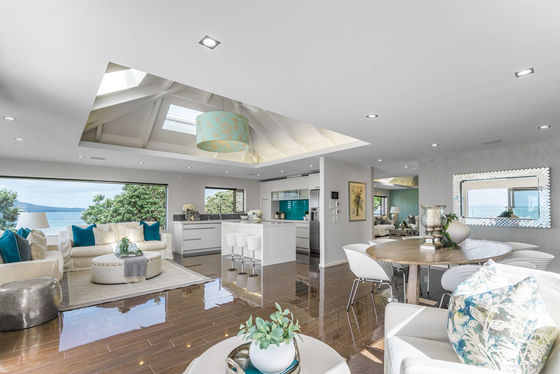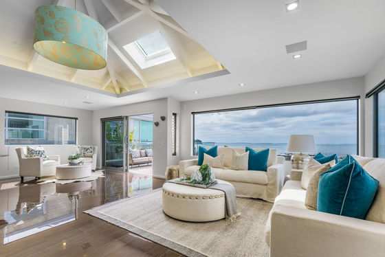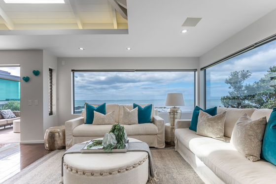Located on highly sought-after Muritai Road, this luxury beachfront residence sits on a freehold 582m² site with direct beach access, offering the best in coastal living. Elevated above the shoreline to maximise privacy and outlook, the home enjoys uninterrupted sea views and an ever-changing coastal backdrop.