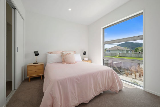 Designed for comfort and ease, the home features three bedrooms and two bathrooms, including a private ensuite off the master. The open-plan kitchen, dining and living area is light-filled and welcoming, with views toward Mount Ngongotaha enjoyed from both the lounge and the sun-soaked deck.