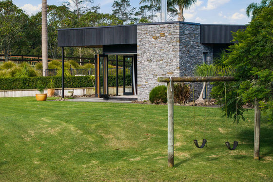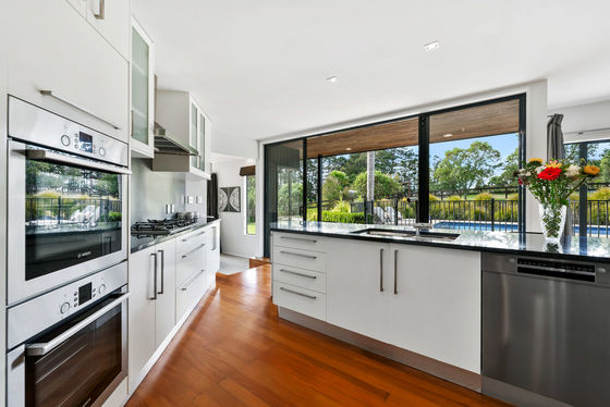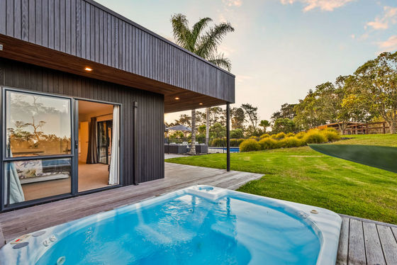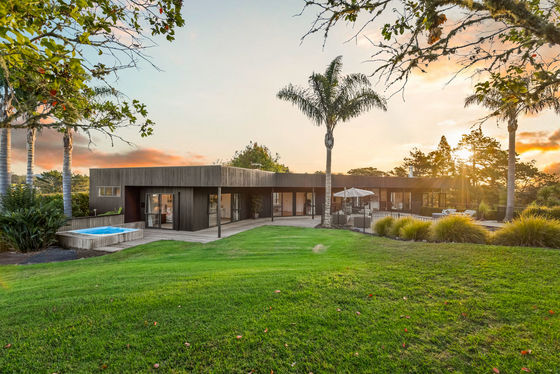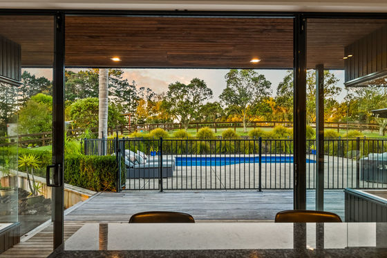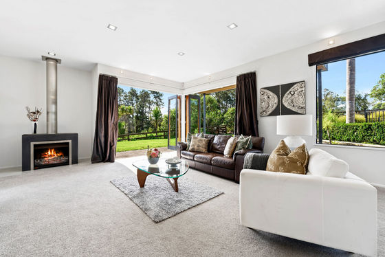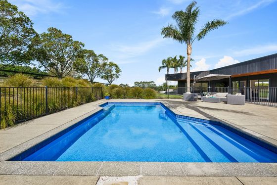A timeless architectural sanctuary on approximately 3.56ha, this striking cedar and schist residence was conceived well ahead of its time, showcasing design principles that remain effortlessly modern today. High-stud ceilings, a feature fireplace and expansive bifold doors anchor the main living zone, inviting natural light to pour in and create a seamless flow to the covered decks and heated inground pool. The open-plan kitchen and dining area enjoy poolside views and exceptional storage, forming the heart of the home, enhancing everyday living.