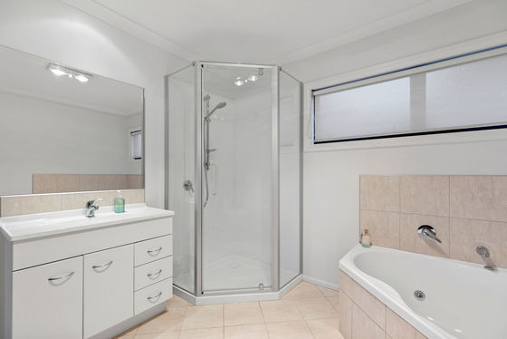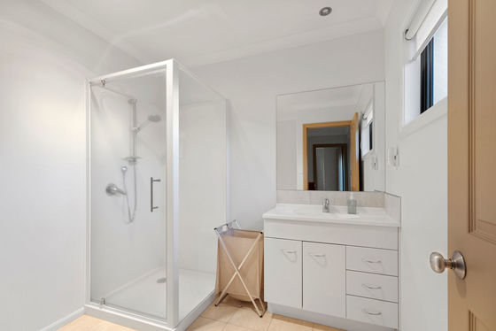 The island kitchen is ideal for daily living and entertaining, featuring granite benchtops and quality appliances. Also on the main level is a generous bedroom with ensuite, perfect for guests, extended family, or extra living. Upstairs, three double bedrooms include a main bedroom with ensuite, plus a family bathroom for convenience.