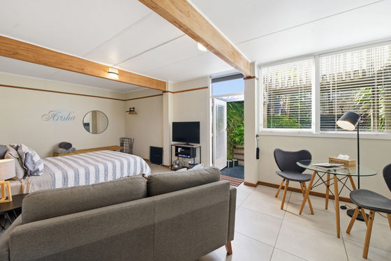Downstairs adds real versatility. A studio with its own bathroom is currently operating as a successful Airbnb, perfect for income, guests, or extended family. Garaging, workshop space and ample storage round out the practicality.