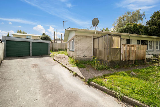 Offering two bedrooms and open plan living, the footprint is functional and ready for transformation. A lock-up double garage and its own concrete driveway provide secure parking and excellent storage - a real advantage. Positioned well back from the road, the private rear garden offers space to enhance, landscape, and create your own outdoor retreat.