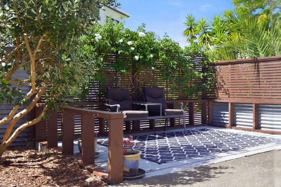 Outside, the partially fenced section includes a single garage plus additional off-street parking, with easy tar-sealed access.